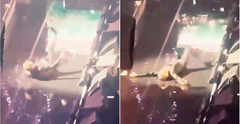 La noche del sábado mientras recibía una ovación del público Luis Miguel intentó realizar uno de sus característicos movimientos escénicos, sin embargo algo salió mal y el cantante terminó en el suelo en un instante, captado por las cámaras.