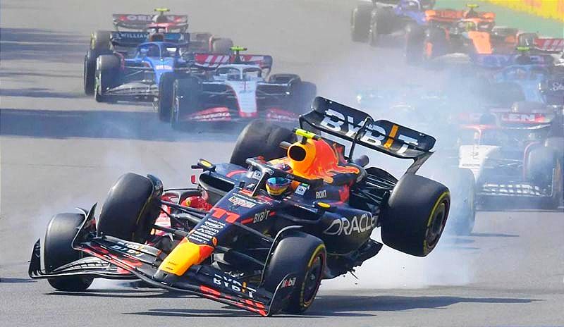 La peor parte de la carrera se la llevó el mexicano Sergio Checo Perez el cual en la primera curva y a los 17 segundos de iniciada la carrera tomó la muy mala decisión de intentar arrebatar la segunda posición después de haber partido en quinto lugar a Leclerc y al no dejerle espacio se tocaron llevándose la peor parte el Mexicano provocándole daños a su monoplaza los cuales no fueron posible reparar obligándolo a retirarse sin haber dado una sola vuelta provocando una gran decepción en la afición que se encontraba eufórica apoyándolo e instantáneamente al ver en las pantallas el accidente de Checo Pérez se hizo un silencio absoluto y comenzaron a escucharse reclamos y a sentirse una gran decepción por la riesgosa y equivocada maniobra del piloto Mexicano que tanta espectativa había levantado durante el fin de semana con las buenas posiciones obtenidas en las prácticas libres así como en la calificación del sábado.