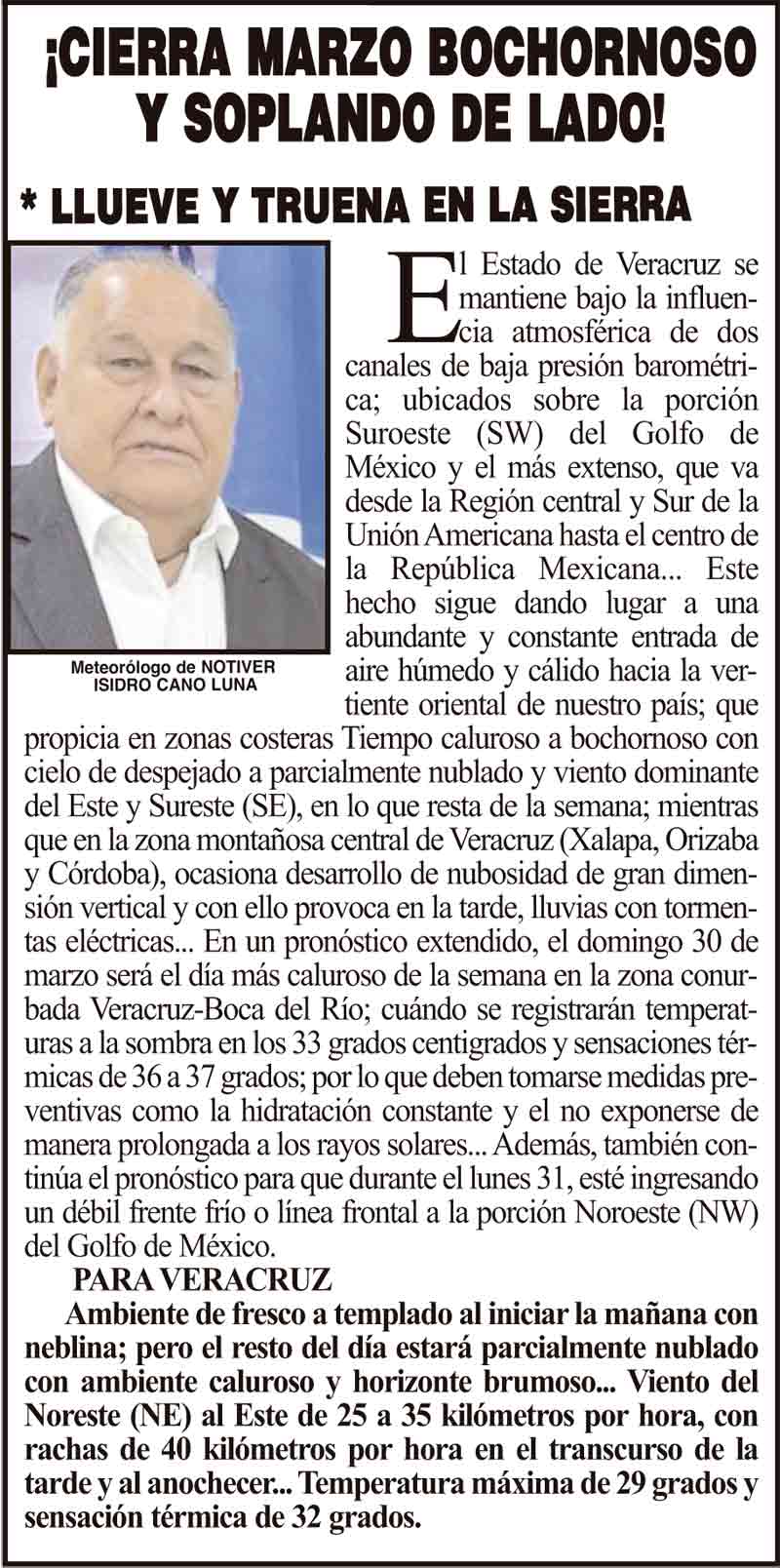 PRIMERA ¡CIERRA MARZO BOCHORNOSO Y SOPLANDO DE LADO! - *LLUEVE Y TRUENA EN LA SIERRA 27 marzo 2025 Más Noticias ¡YA TIENE PUENTAZO EL SEGURO! ¡LA CARTELERA! | LA ÚLTIMA Y NOS VAMOS - De vacaciones andamos en Papantla, Veracruz, y en días pasados escuchamos dos charlas sobre los exploradores y la iconografía del basamento de los Nichos y El Tajín, en el Museo Teodoro Cano… ¡MAESTROS TENDRÁN BONO Y AGUINALDO! ¡LES MOCHAN EL AGUA A RÍO MEDIO! - *Por mantenimiento ¡SALE HUMO DE LAS ALCANTARILLAS! - *Explosiones en Jardines de Mocambo ¡LEY GARROTE! - *Paguen ya impuestos o van multas ¡YA TIENE MURAL TITO NIEVES! ¡PRESENTA LOTERÍA NACIONAL EL ÁLBUM DEL MUNDIAL! LOS CARTONES ¡PREVENCIONES PARA EVITAR EL INCREMENTO DE LAS INFECCIONES RESPIRATORIAS AGUADAS!