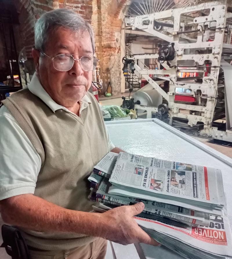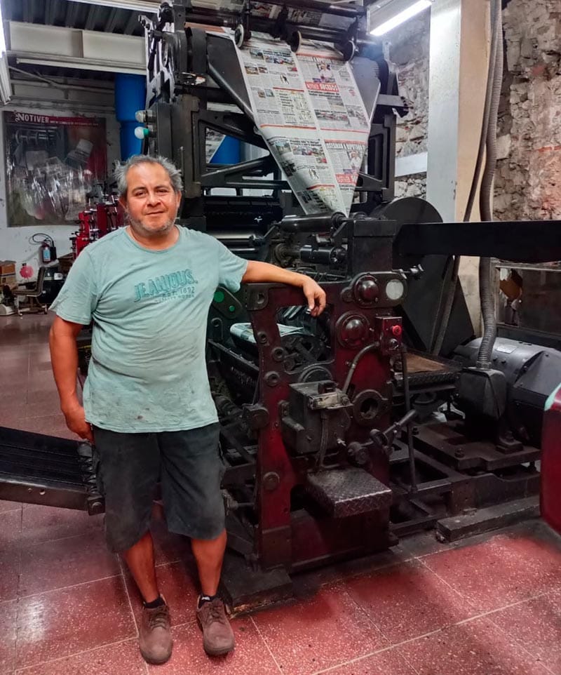 La máquina de NOTIVER es una "clásica", Evaristo la define como "dócil" y "viejita", pero imprime bien.