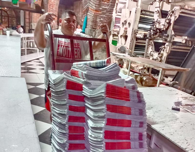 El encuadernado del periódico es otro cantar, es como si cada uno tuviera su estilo, sale de la prensa y como si fuera la harina antes de entrar al horno, todos lo hacen de manera distinta y con una gran facilidad.