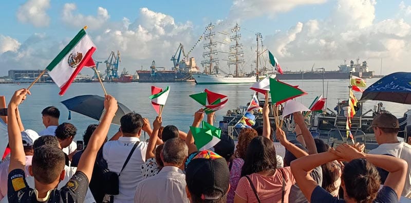 Cuando Claudia subió al barco la siguieron por toda la Bahía hasta que se perdió de vista llegando a la fortaleza, ni quien se acuerde de López Obrador.