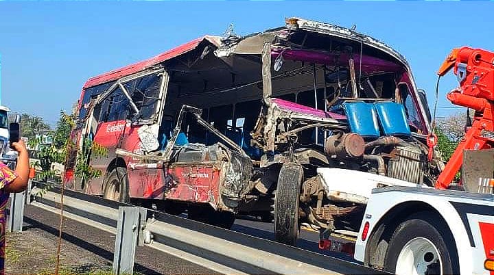 Un fuerte accidente ocurrió esta mañana en la autopista Cardel-Veracruz, donde un camión de pasajeros colisionó contra un tractocamión. El saldo preliminar es de alrededor de 30 personas lesionadas y una fallecida.