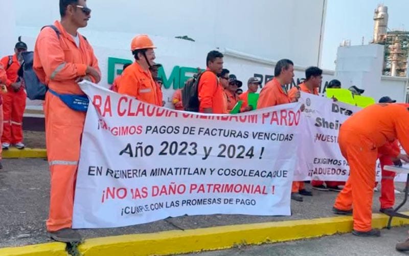 Los empleados y dueños de empresas dijeron que continuarán con el plantón permanente afuera de la Refinería Minatitlán, pues los pasivos rebasan los 2 mil 200 millones de pesos.