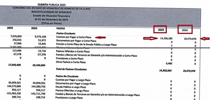 Llama la atención las cuentas por pagar a Corto Plazo, en 2025 ascienden a 14 millones 296 mil 385 mientras que en 2024 estaba en 10 millones 474 mil 970, un incremento del 40%.