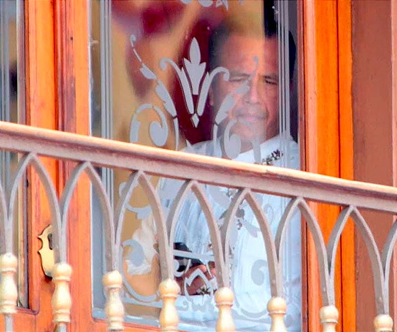EL ASOMADO.-Se mencionaba previo al evento de este sábado, el único que no podía asomar "ni las narices" en la visita y cierre de Claudia y Chío, era el gobernador Cuitláhuac García, pero contreras como es, si se asomó y fue captado echando "un ojo" desde un ventanal del palacio de Gobierno en otra imagen del sexenio, con una cara de "cuyeyos" no invitaron.