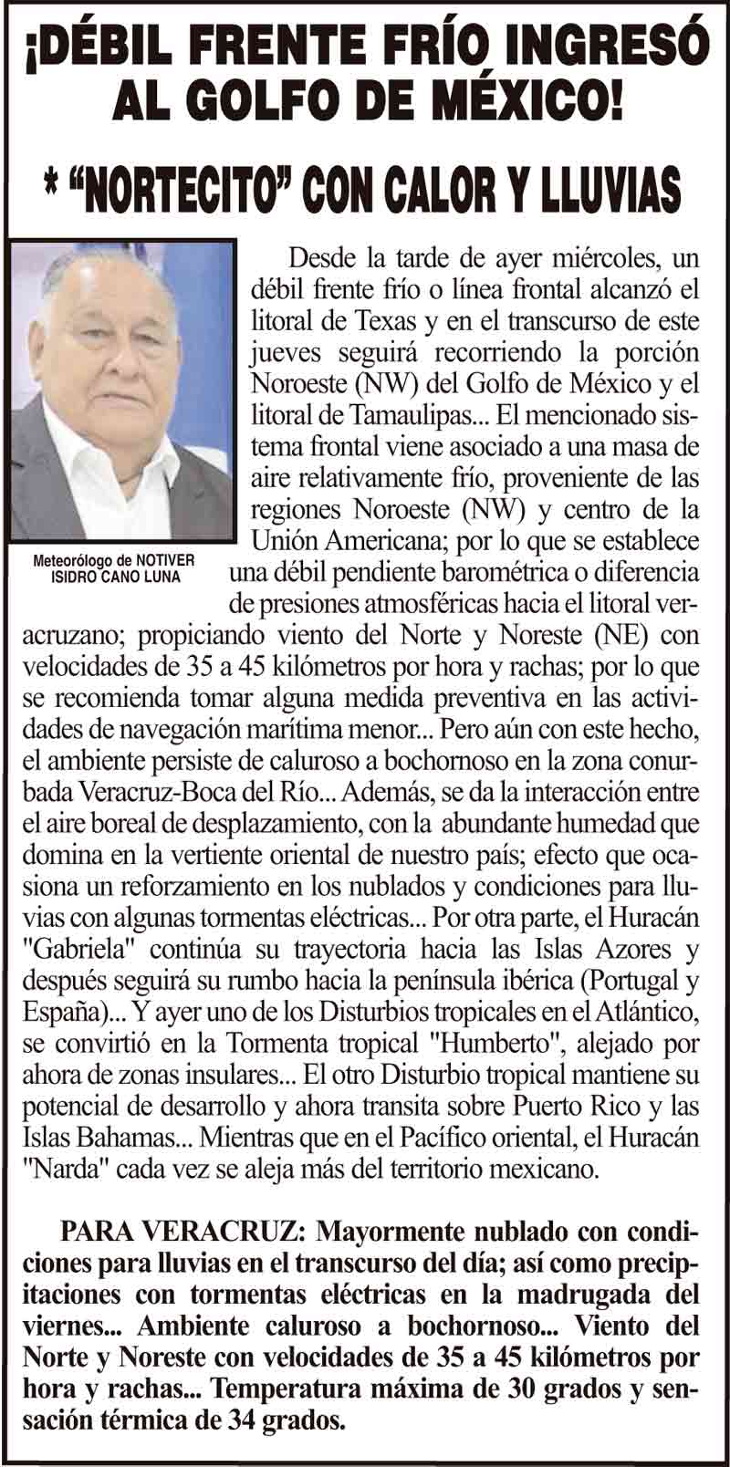 PRIMERA ¡DÉBIL FRENTE FRÍO INGRESÓ AL GOLFO DE MÉXICO! - *“NORTECITO” CON CALOR Y LLUVIAS 25 septiembre 2025 Más Noticias LA ENCUESTA | - ME ESTÁS OYENDO INÚTIL?... ¡CON BAILONGOS QUIEREN AYUDAR A LOS DAMNIFICADOS DEL NORTE! - *El mismo Alor, toca los timbales ¡YA SE LA APROBARON! - REFORMA PARA LA FISCALÍA ESTATAL NOTI-MEME | - ASÍ ESTUVO EL INFORME... ¡MÁS DE 9 MIL MILLONES! - *Eso costaría cancelar en Veracruz al Grupo MAS ¡LE DAN LUZ VERDE! - DESDE GUATEMALA ¡EL CUARTO! ¡Y COM-PA-RE-CIÓ! - ÁNDALE... ¡NO SE VA LISBETH AURELIA! - *Descarta ir a la Fiscalía y que seguirá como magistrada ¡CREAN EL SÚPER MAÍZ!