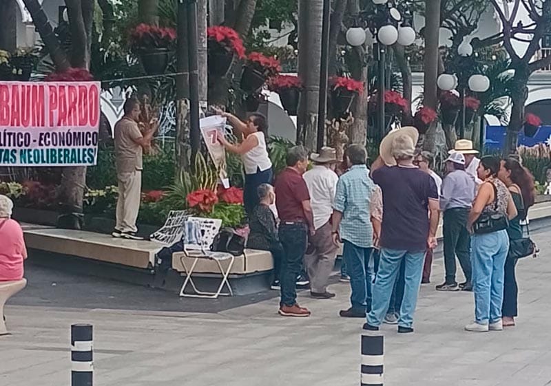Los hechos se registraron a las 10 de la mañana cuando un grupo de ciudadanos comenzaron a reunirse en el Zócalo de esta ciudad y colocaron una lona y pancartas con la imagen de la Presidenta, dijeron que el motivo principal era el apoyo a Claudia Sheinbaum Pardo.