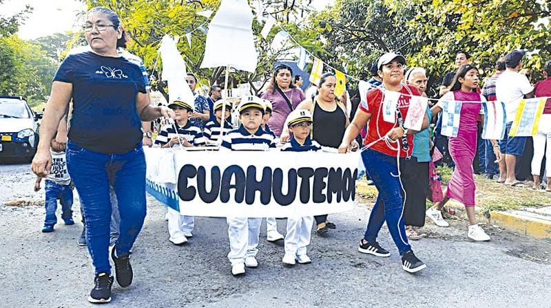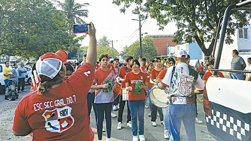 Al contingente se sumaron ayer estudiantes de la Escuela Secundaria General número 7, así como niñas y niños de los jardines Juana de Asbaje y Citlalli, quienes aportaron alegría y colorido al recorrido.