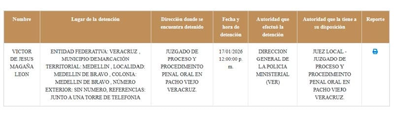 Ambos detenidos serán presentados en una audiencia inicial en el penal de Pacho Viejo en Coatepec.