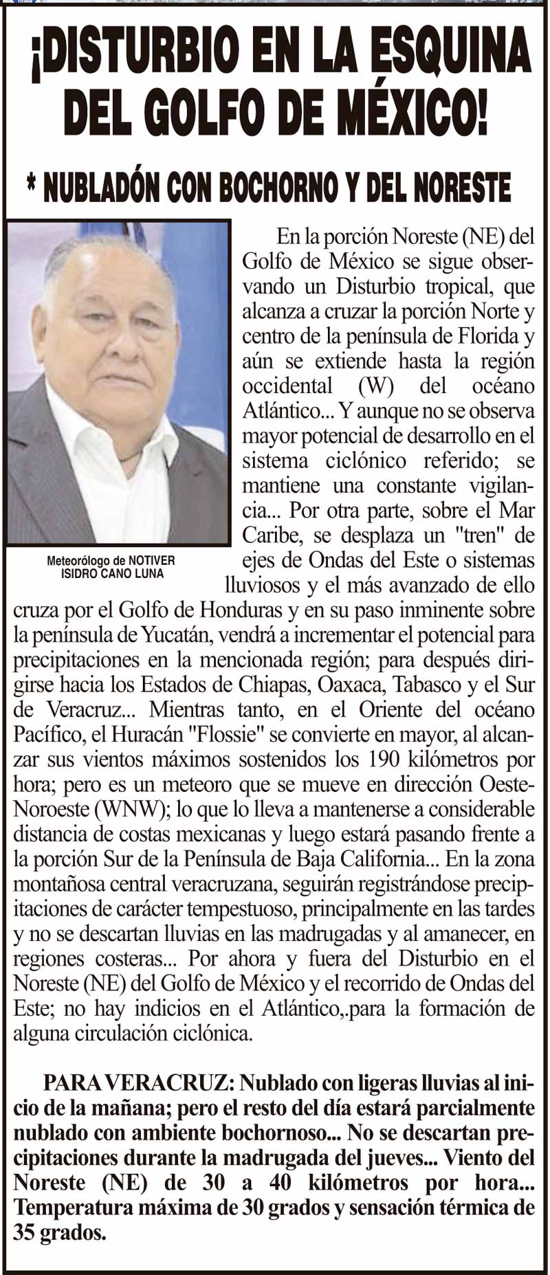 PRIMERA ¡DISTURBIO EN LA ESQUINA DEL GOLFO DE MÉXICO! - *NUBLADÓN CON BOCHORNO Y DEL NORESTE 2 julio 2025 Más Noticias ¡TENDRÁ LA MARINA SÚPER BARCOS! ¡CLONAN CARTEL DE RECOMPENSA DE LA FGE! NOTI-MEME | - LOS OTROS CARTELES! ¡HOMENAJE A FIDEL Y ROSITA! - DEL PRI ¡PASAN LISTA LOS ALCALDES! - *En la Heroica Escuela Naval, ahí estuvieron Maryjose, Beto Cobos y Rosa María ¡ISLEÑO SE QUEDÓ CON CAMIONETÓN! - *Capibara no sabía, pero sí la esposa del director de Tránsito, Andrés Delgado ¡EXIGEN JUSTICIA! - LA COMUNIDAD MÉDICA LOS CARTONES ¡LOS VAN A INVESTIGAR! - *A policías estatales que dispararon a la doctora ¡VINO CLAUDIA! - A LA GESTA HEROICA