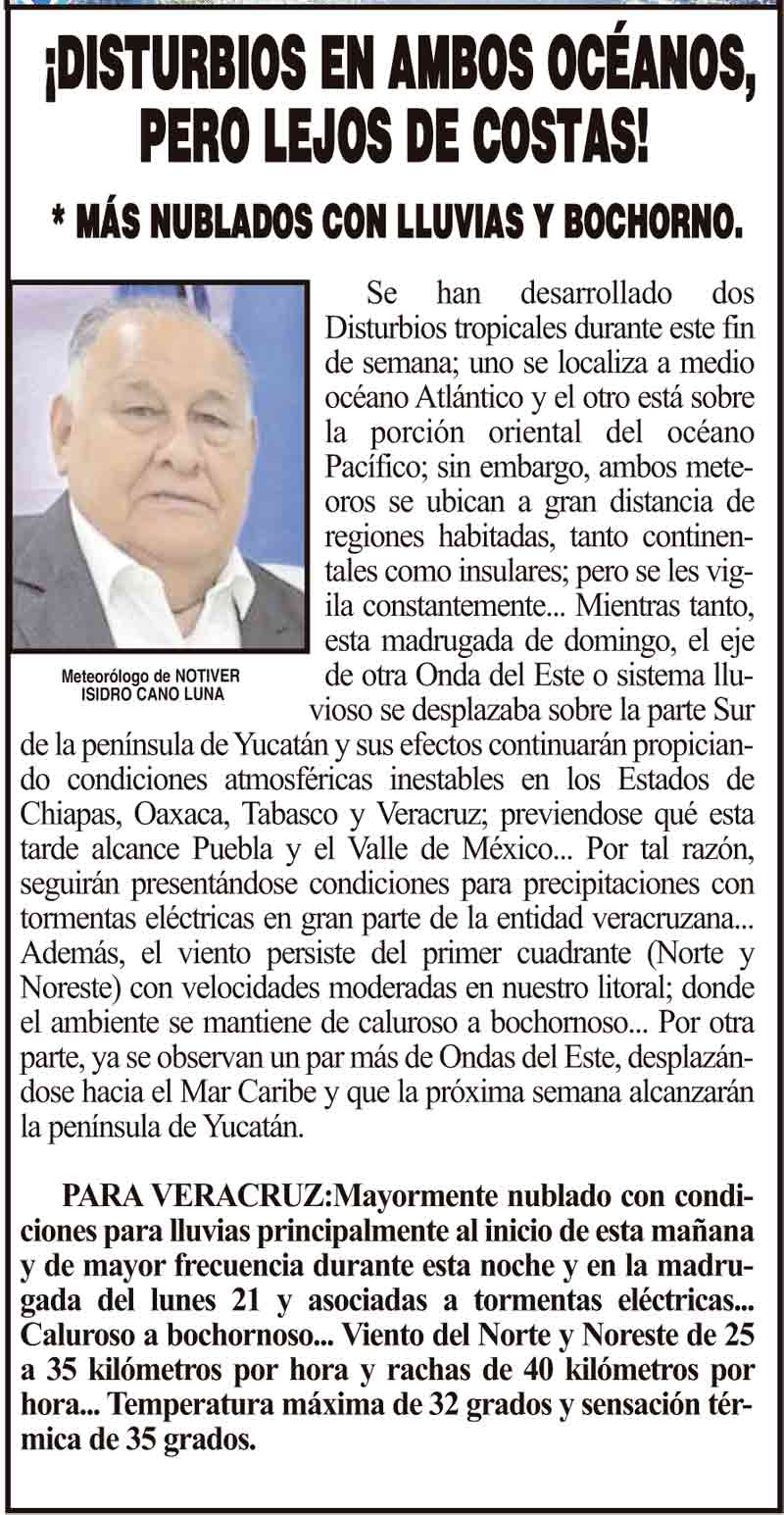 PRIMERA ¡DISTURBIOS EN AMBOS OCÉANOS, PERO LEJOS DE COSTAS! - *MÁS NUBLADOS CON LLUVIAS Y BOCHORNO. 20 julio 2025 Más Noticias LA PORTADA - JUEVES 30 DE ABRIL 2026 ¡LA DEFIENDE ESTEBAN! - *Condena las criticas del papá de Cui ¡14 AÑOS SIN REGINA! - *Y no hay justicia ¡MUERE LUIS MUSLERA! - “EL CROMO” LOS CARTONES ¡RESCATAN 101 HUEVOS DE TORTUGA LORA! ¡AUMENTAN FUGAS DE GAS! - *Cuatro a 5 servicios diarios, por la ola de calor ¡Y LO TUNDEN! - A ATANASIO ¡BERTHA PIDE LICENCIA! ¡NAHLE REVIRA! - *“Yo ando trabajando”, dice tras polémica por críticas de Atanasio