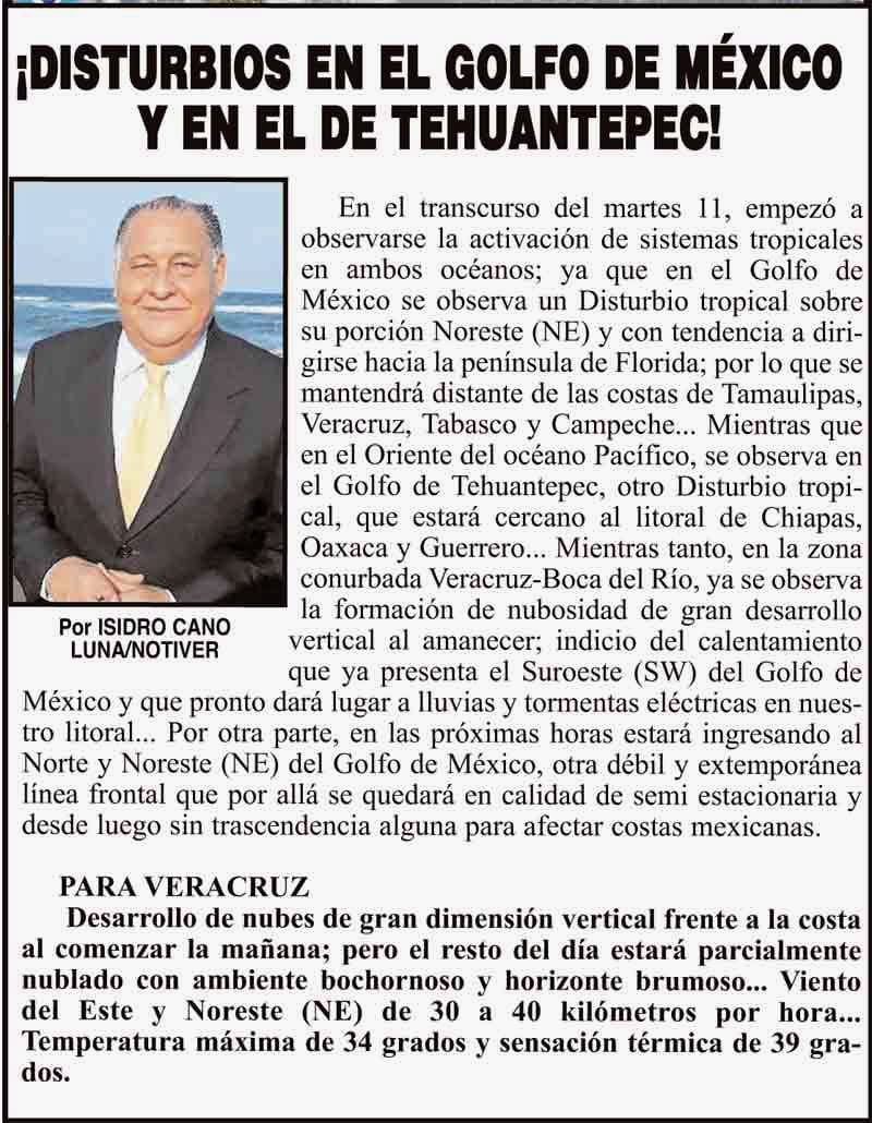 PRIMERA ¡DISTURBIOS EN EL GOLFO DE MÉXICO Y EN EL DE TEHUANTEPEC! - TEMPERATURA MÁXIMA DE 34 GRADOS 12 junio 2024 Más Noticias ¡TERROR EN PALMA REAL! - EXPLOSIÓN E INCENDIO... ¡MUERE RAMÓN CANO BELTRÁN! - HAY CONSTERNACIÓN ¡SE LA REVIRA MORENA! - AGARRENSE ¡AGREDEN A REPORTEROS! - EN COATEPEC ¡CONDENAN A EX FUNCIONARIO DE DUARTE! - POR DESAPARICIÓN FORZADA ¡HASTA 70 ASALTOS! - Y DIARIOS... ¡COLECTIVOS VAN CON LA FISCALA! - *Ahora sí acuerdan reforzar búsqueda de desaparecidos, pero señalan falta de presupuesto, personal y avances en las investigaciones ¡SE FUE EL ÚLTIMO MURALISTA! - MELCHOR PEREDO LA ENCUESTA | - DICE QUE HA SER OTRO DERRAME! ¡YA HAY FECHA DEL SALSAFEST! - *Del 12, 13 y 14 de junio en el Salsódromo de Boca