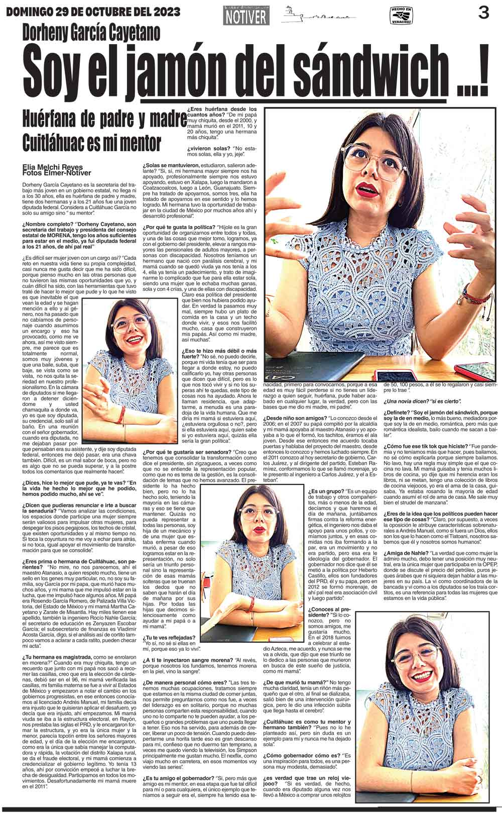 PRIMERA SOY EL JAMÓN DEL SÁNDWICH...! -DORHENY GARCÍA CAYETANO CUITLÁHUAC ES MI MENTOR... 8 noviembre 2023 Como lo leyó en su NOTIVER impreso...