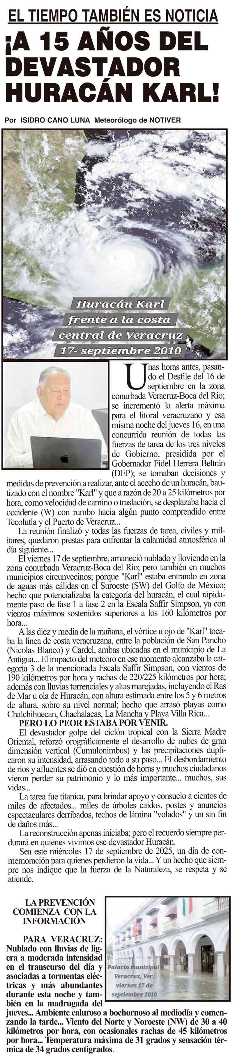 PRIMERA EL TIEMPO TAMBIÉN ES NOTICIA - ¡A 15 AÑOS DEL DEVASTADOR HURACÁN KARL! 17 septiembre 2025 Más Noticias LA ENCUESTA | - ME ESTÁS OYENDO INÚTIL?... ¡CON BAILONGOS QUIEREN AYUDAR A LOS DAMNIFICADOS DEL NORTE! - *El mismo Alor, toca los timbales ¡YA SE LA APROBARON! - REFORMA PARA LA FISCALÍA ESTATAL NOTI-MEME | - ASÍ ESTUVO EL INFORME... ¡MÁS DE 9 MIL MILLONES! - *Eso costaría cancelar en Veracruz al Grupo MAS ¡LE DAN LUZ VERDE! - DESDE GUATEMALA ¡EL CUARTO! ¡Y COM-PA-RE-CIÓ! - ÁNDALE... ¡NO SE VA LISBETH AURELIA! - *Descarta ir a la Fiscalía y que seguirá como magistrada ¡CREAN EL SÚPER MAÍZ!
