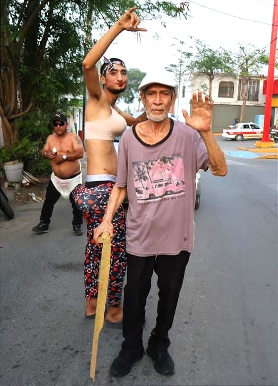 En las calles de la colonia Primero de Mayo Norte, en la ciudad de Boca del Río, nos encontramos con Joel, un personaje que encarna el espíritu festivo de la temporada. Vestido como mujer, con globos en los glúteos y el pecho para darle un toque cómico a su caracterización, él y sus compañeros se encontraban en la avenida Úrsulo Galván, descansando tras recorrer varias calles de la zona conurbada Veracruz-Boca del Río.