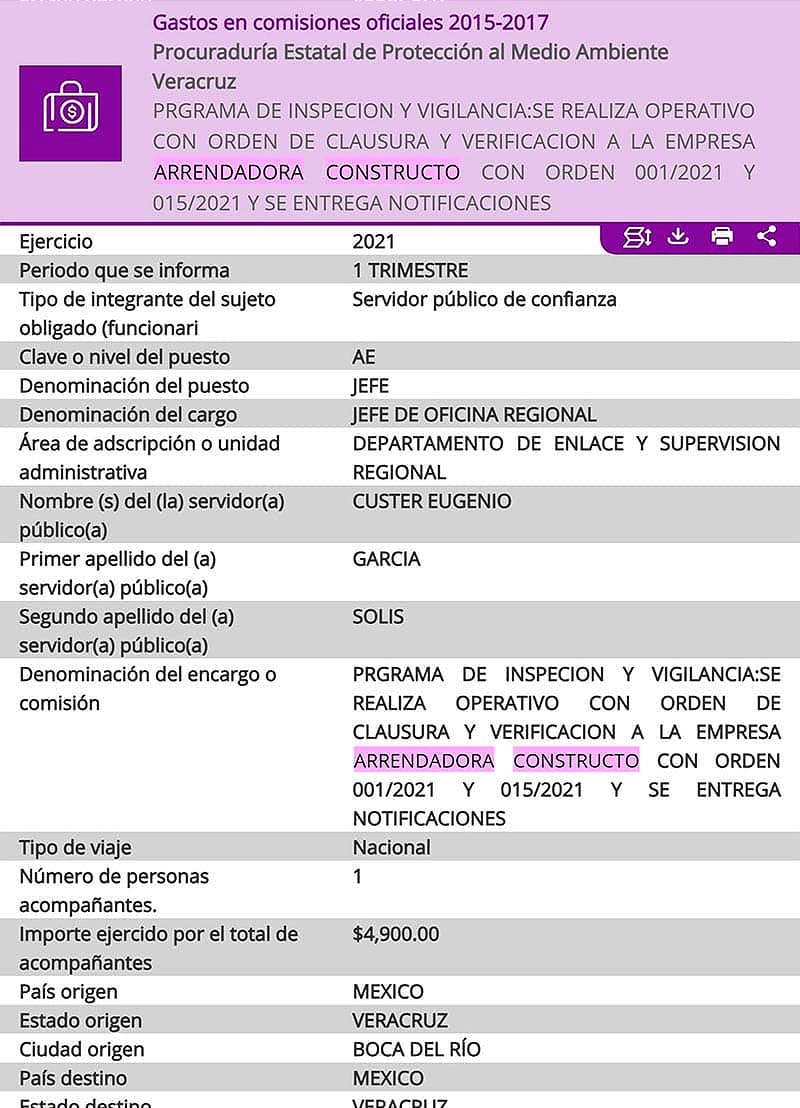 La empresa Arrendadora Constructo SA de CV que ganó esa millonaria licitación para la remodelación del Aquarium es la misma que ha sido sancionada por la Secretaría de Medio Ambiente del estado de Veracruz, por contaminar municipios como el de Nogales.