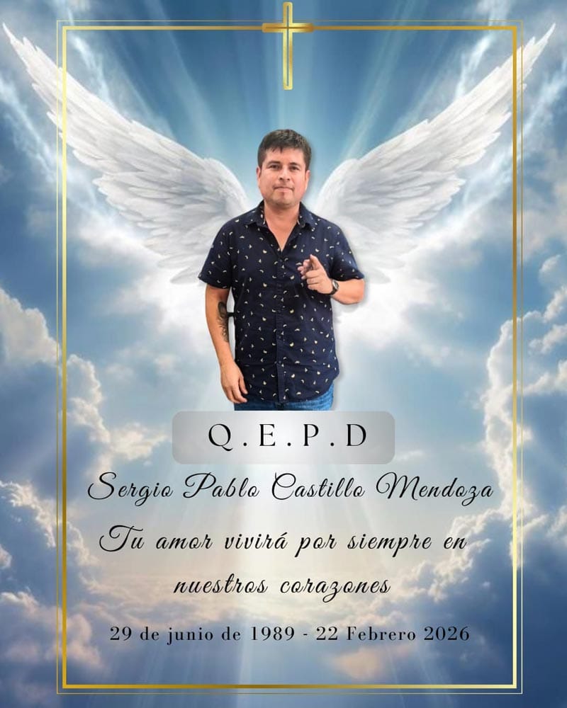 “Mi amado esposo Sergio Pablo Castillo Mendoza, no encuentro las palabras para esto. Es inmensa la tristeza que siente mi corazón, un dolor tan profundo que quisiera que no fuera verdad. Mi consuelo, que estarás en paz, descansando, mi bello ángel”, escribió su esposa en redes sociales.