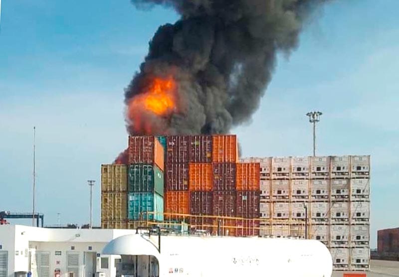 Agregó que el incendio se registró en la terminal de contenedores de ICAVE en la Bahía Norte del Puerto no obstante la emergencia no rebasó el perímetro de la cesionaria, por fortuna el siniestro se pudo controlar y en unas 5 horas se tuvo la extinción total del fuego.