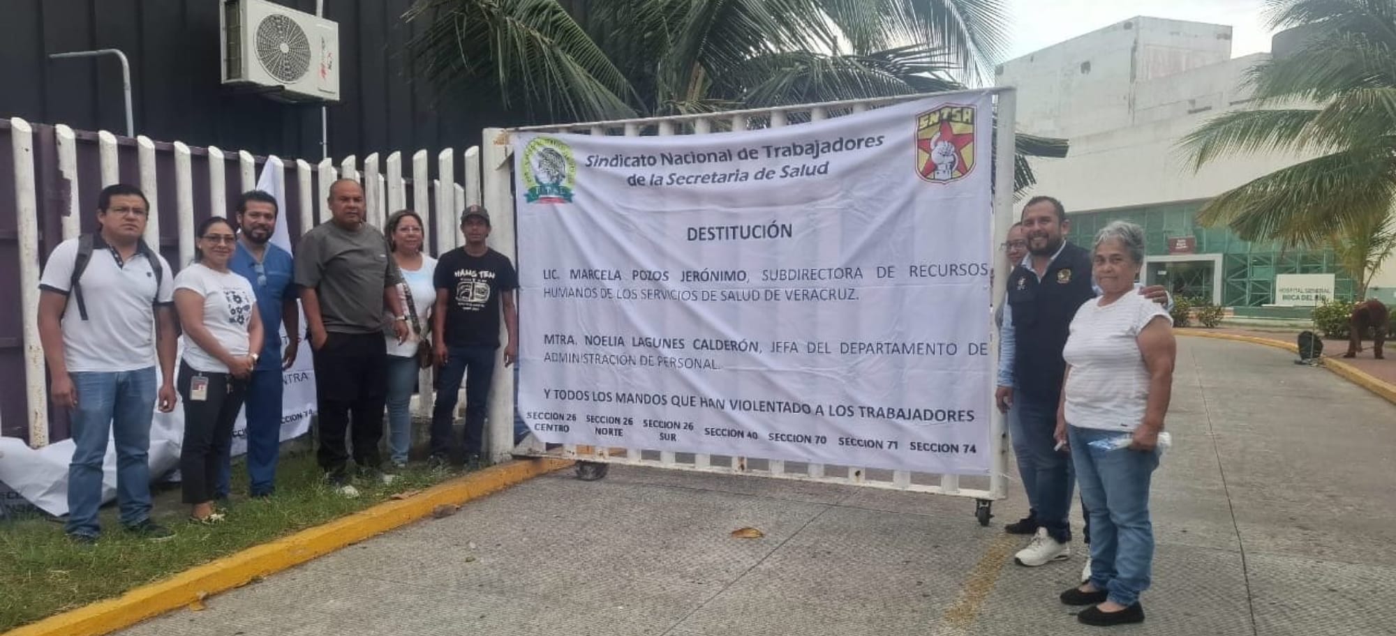 Médicos, enfermeras, personal de Vectores e integrantes de las Secciones 26, 40, 70, 71 y 74 del Sindicato Nacional de Trabajadores de la Salud (SNTSA), se manifestaron en el Hospital de Alta Especialidad de Veracruz (HAEV), el Hospital de Tarimoya y la Jurisdicción Sanitaria número VIII, para exigir el respeto al contrato colectivo de trabajo y la renuncia de ocho servidores públicos de los Servicios de Salud de Veracruz y del programa IMSS Bienestar.
