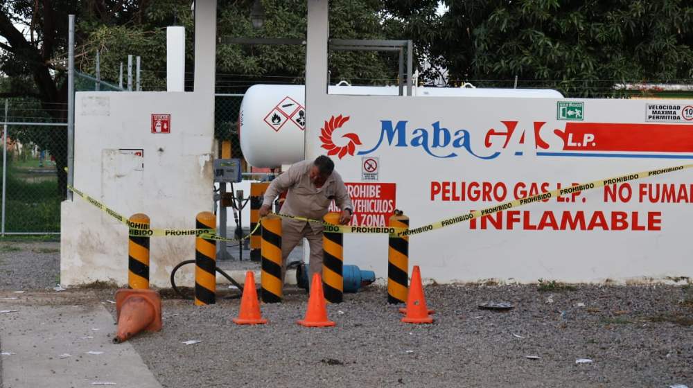 El incidente ocurrió en la carretera a Dos Lomas y la calle 10, cuando un empleado rellenaba un tanque de 20 kilos, cuya mala condición provocó que reventara, saliendo proyectado y causando una fuerte onda expansiva.