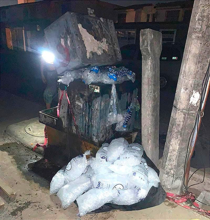Desde la semana pasada 20 familias en el fraccionamiento Geo Los Pinos 2 viven con bajones y apagones del transformador que los abastece y cada noche hombres y mujeres se exponen a una tragedia colocando bolsas de hielo al aparato para que siga funcionando porque sus quejas no han sido suficientes para que les hagan caso.