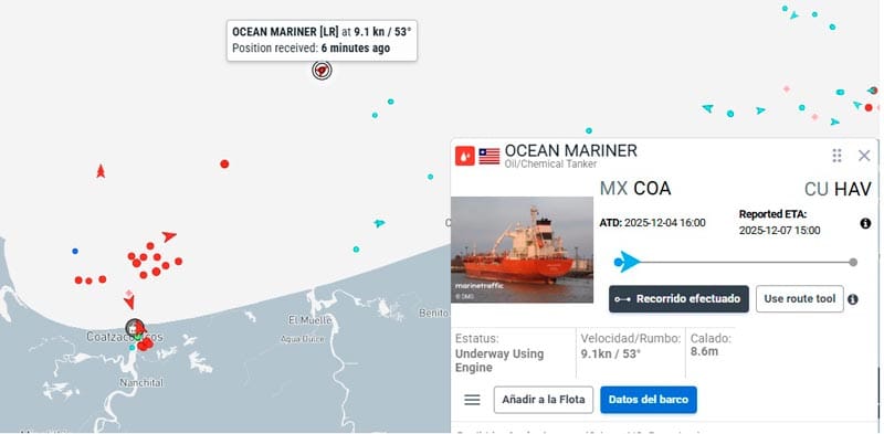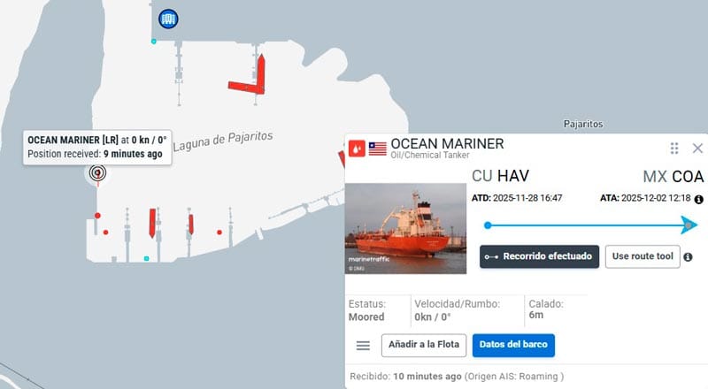 En un arribo "Fast Track", el buque cisterna Ocean Mariner entró y salió del puerto de Coatzacoalcos, el conocido por llegar a la terminal de Pemex "Pajaritos" y trasladar hidrocarburos a Cuba.