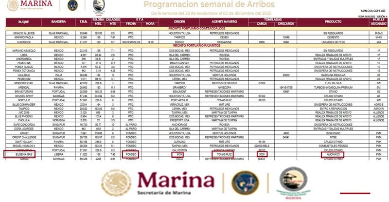 Cabe destacar que oficialmente esta vez no hubo detalles sobre la llegada del Mariner, su registro fue borrado de la bitácora pública de programación de buques de Asipona Coatzacoalcos.