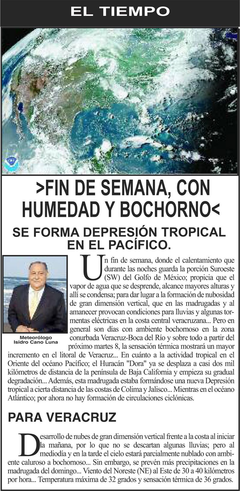SE FORMA DEPRESIÓN TROPICAL EN EL PACÍFICO. >FIN DE SEMANA, CON HUMEDAD Y BOCHORNO<SE FORMA DEPRESIÓN TROPICAL EN EL PACÍFICO.