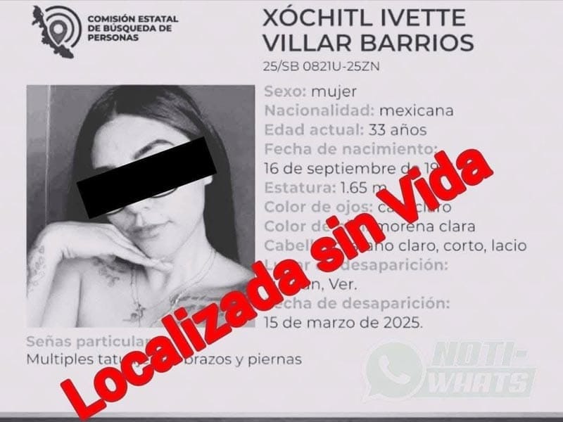 Xóchitl Ivette Villar Barrios, de 33 años, era originaria de Tuxpan y estaba desaparecida desde el pasado 15 de marzo.