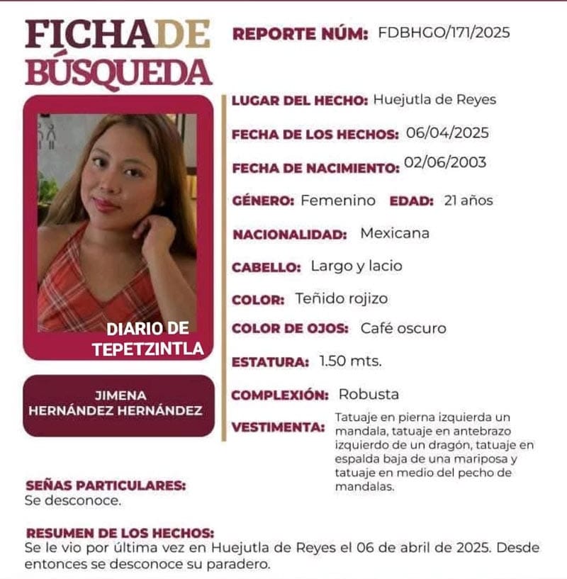 Se trata de Jimena Hernández Hernández, de 21 años, originaria de Huejutla, Hidalgo.