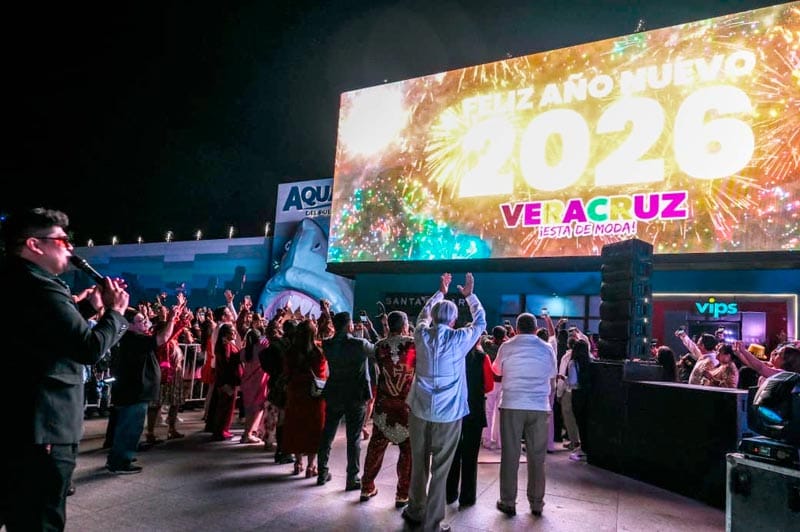 (Agencias).- Miles de veracruzanas y veracruzanos, así como visitantes nacionales y extranjeros, dieron la bienvenida al 2026 en la explanada del Aquarium del Puerto de Veracruz y en sus pantallas exteriores, donde se realizó el tradicional conteo regresivo hasta las 00:00 horas, seguido de un espectáculo de luces que iluminó el cielo, en un ambiente de alegría, convivencia y sano esparcimiento familiar.