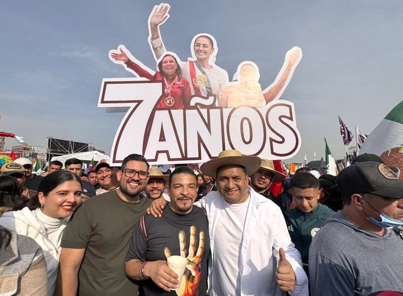 Militantes de Morena acudieron este sábado al Zócalo de la Ciudad de México para acompañar a la Presidenta Claudia Sheinbaum Pardo, en la celebración de los siete años de la llegada de la Cuarta Transformación al poder.
