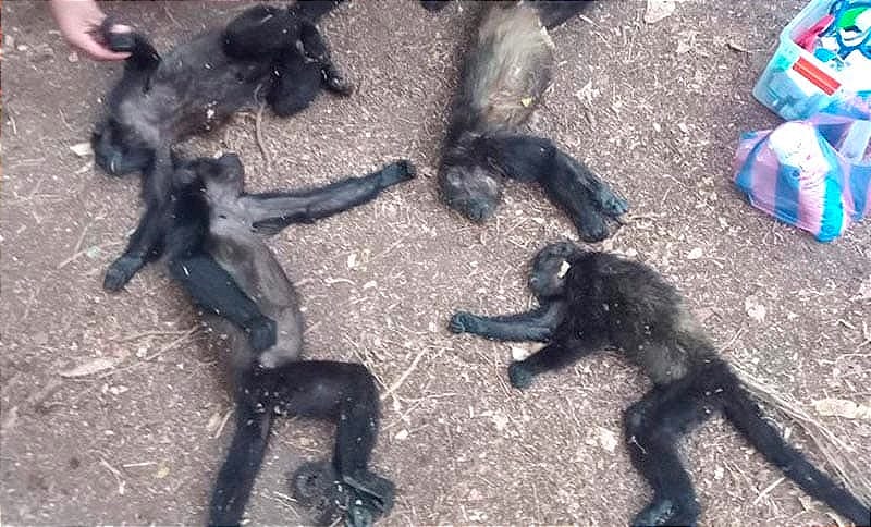 Se reportó el deceso de al menos unos siete Monos Aulladores que murieron por un presunto golpe de calor en la localidad de "Barrosa" del municipio de Hueyapan de Ocampo en el sur de Veracruz, de acuerdo a informes de Protección Civil, los pobladores utilizaron las redes sociales para pedir ayuda con la esperanza de salvar a los animales afectados por las altas temperaturas.
