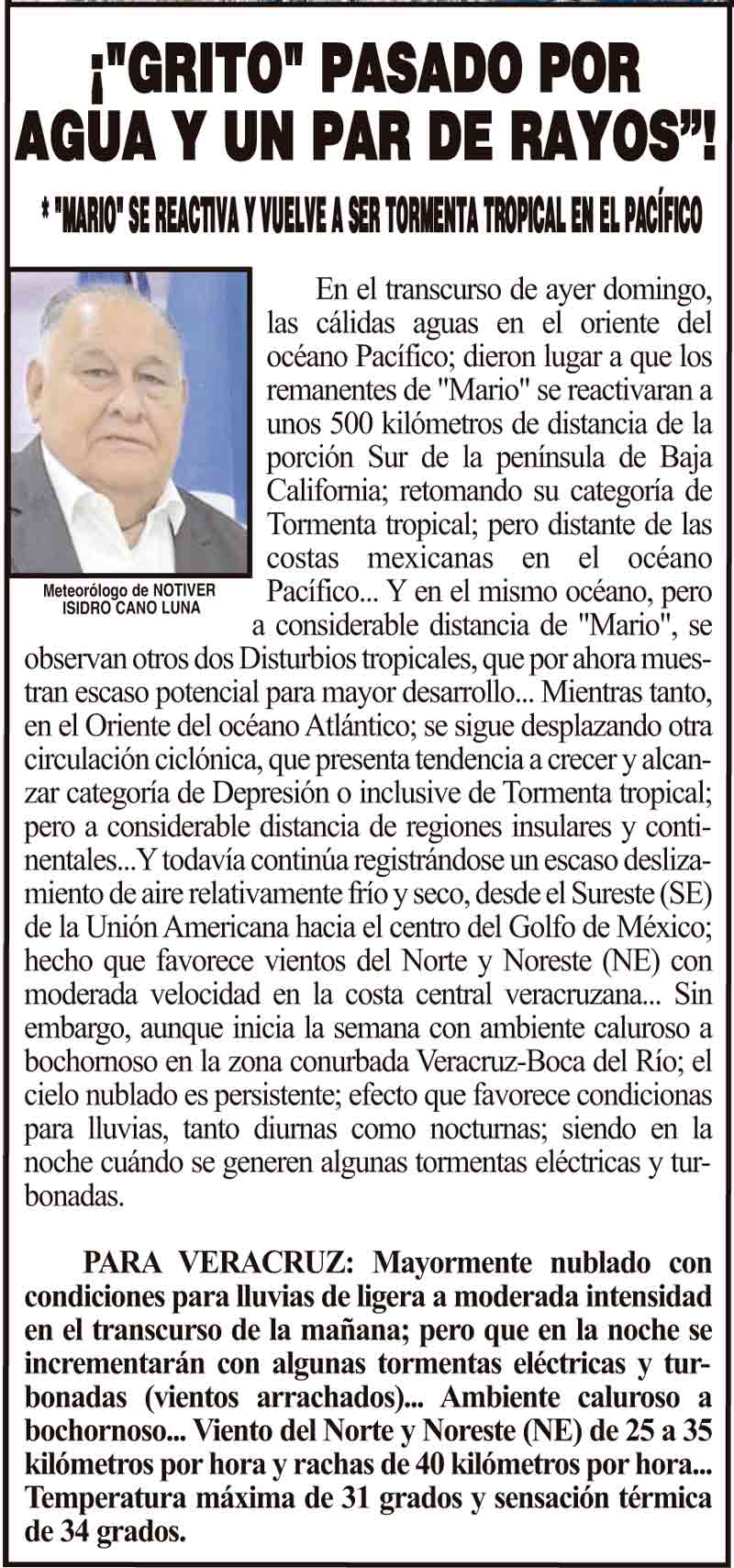 PRIMERA ¡"GRITO" PASADO POR AGUA Y UN PAR DE RAYOS”! - *"MARIO" SE REACTIVA Y VUELVE A SER TORMENTA TROPICAL EN EL PACÍFICO 15 septiembre 2025 Más Noticias LA ENCUESTA | - ME ESTÁS OYENDO INÚTIL?... ¡CON BAILONGOS QUIEREN AYUDAR A LOS DAMNIFICADOS DEL NORTE! - *El mismo Alor, toca los timbales ¡YA SE LA APROBARON! - REFORMA PARA LA FISCALÍA ESTATAL NOTI-MEME | - ASÍ ESTUVO EL INFORME... ¡MÁS DE 9 MIL MILLONES! - *Eso costaría cancelar en Veracruz al Grupo MAS ¡LE DAN LUZ VERDE! - DESDE GUATEMALA ¡EL CUARTO! ¡Y COM-PA-RE-CIÓ! - ÁNDALE... ¡NO SE VA LISBETH AURELIA! - *Descarta ir a la Fiscalía y que seguirá como magistrada ¡CREAN EL SÚPER MAÍZ!