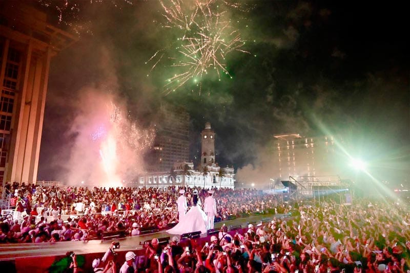 Ante miles de personas que se concentraron en la Macroplaza del Malecón, la Gobernadora Rocío Nahle García coronó a la Reina de la “Fiesta de Todos”, mientras la alcaldesa de Veracruz, Rosa María Hernández Espejo, le entregó el cetro que la acompañará durante su reinado.