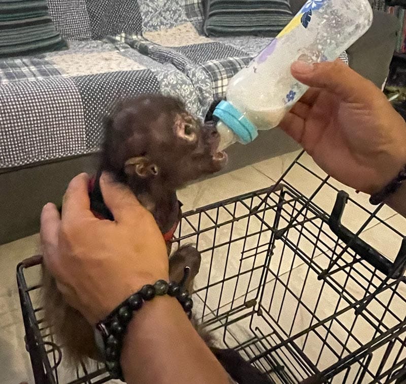 El grupo ambientalista Earth Mission, dio a conocer los hechos y dijeron que el mono les fue entregado de manera voluntaria y presentaba desnutrición y deshidratación y sería llevado a la brevedad a una UMA especializada en manejo de primates por la autoridad federal.