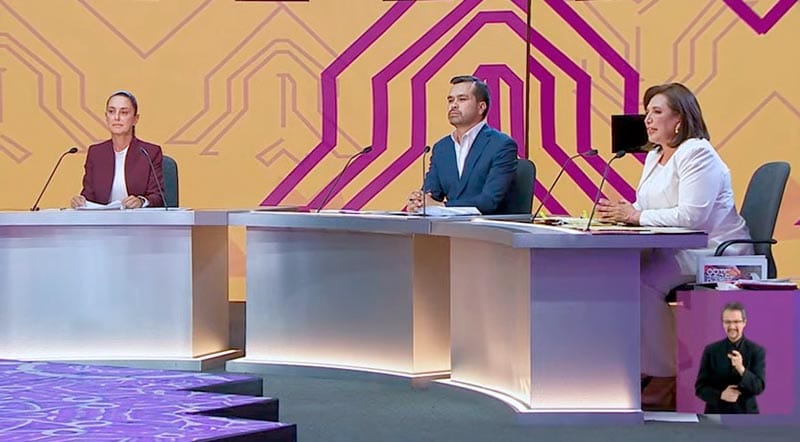 Este domingo 8 de abril se llevó a cabo el primero de tres debates presidenciales organizados por el INE, entre las candidatas de Morena, Claudia Sheinbaum, Xóchitl Gálvez del PAN-PRI-PRD y el de Movimiento Ciudadano, Jorge Álvarez Maynez, rumbo a la jornada del 2 de junio.