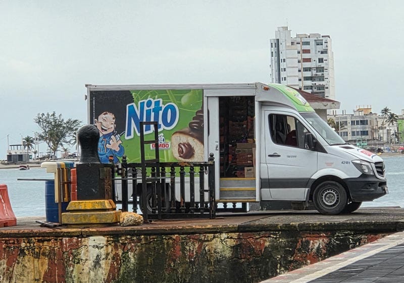 Incluso, hasta una camioneta de la empresa Marinela que transportaba el pastelito Nito entró a los muelles a dejar mercancía, todo bajo un fuerte despliegue de seguridad.