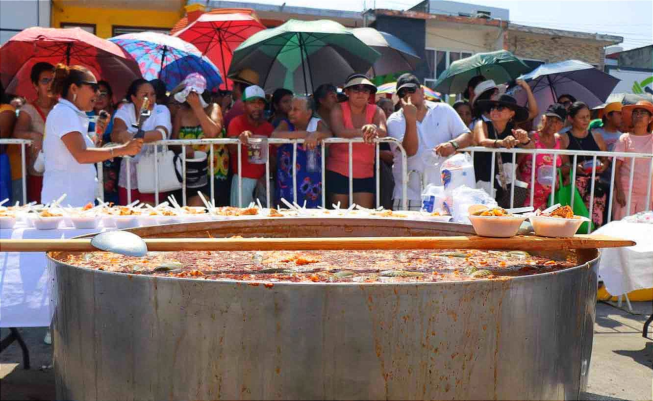 La alcaldesa Lizzette Álvarez Vera estimó que se cocinaron 12 toneladas de Arroz a la Tumbada en las 20 pailas que se instalaron sobre el bulevar Marco Antonio Muñoz.