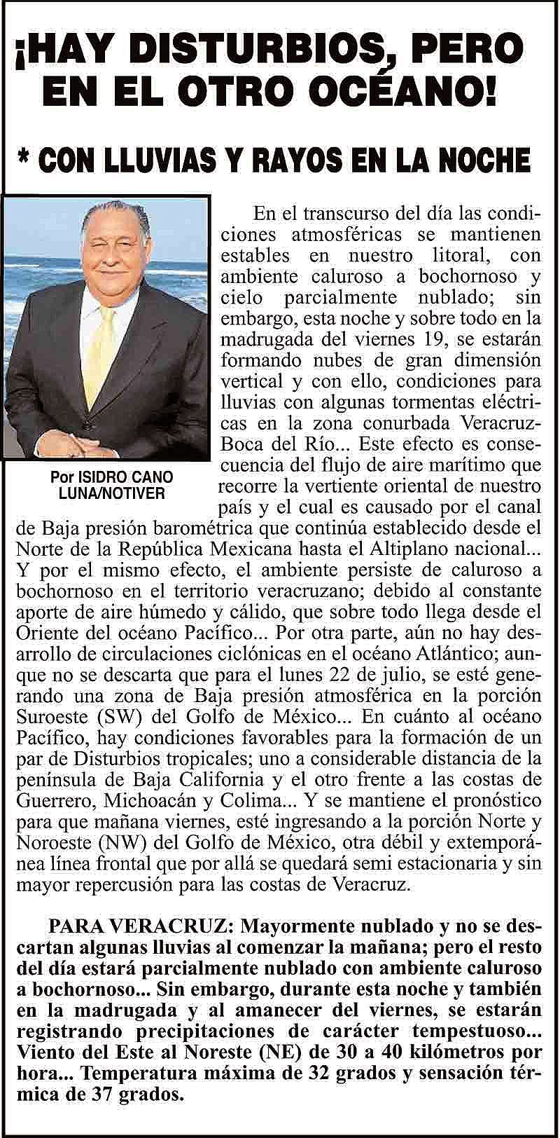 PRIMERA ¡HAY DISTURBIOS, PERO EN EL OTRO OCÉANO! - *CON LLUVIAS Y RAYOS EN LA NOCHE 18 julio 2024 Más Noticias ¡YA SE FUERON! - *Diputados se van por la alcaldía ¡HAY ACOSO JUDICIAL! - CONTRA PERIODISTAS EN MÉXICO ¡ESTAFAN A ADULTOS MAYORES DE 65 Y MÁS! LOS CARTONES ¡HASTA DOS PUENTES! - EN BOCA DEL RÍO LA ENCUESTA | - AYAYAY! ¡ACALAMBRAN A CAZARÍN! - AY NANITAS ¡SE FUE EL USS WICHITA! - A PATRULLAR EL GOLFO DE MÉXICO ¡MARYJOSE TOMARÁ LA PROTESTA TEMPRANITO! - LOS MADRUGA ¡DENUNCIAN “EXTERMINIO” DEL CAFÉ DE CALIDAD!