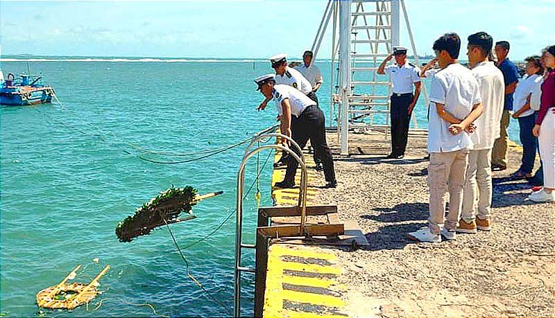 Antes de finalizar el homenaje se depositó una ofrenda floral en el mar para cada uno de los marinos mercantes fallecidos, la familia de José Andrés depositó una corona de flores.