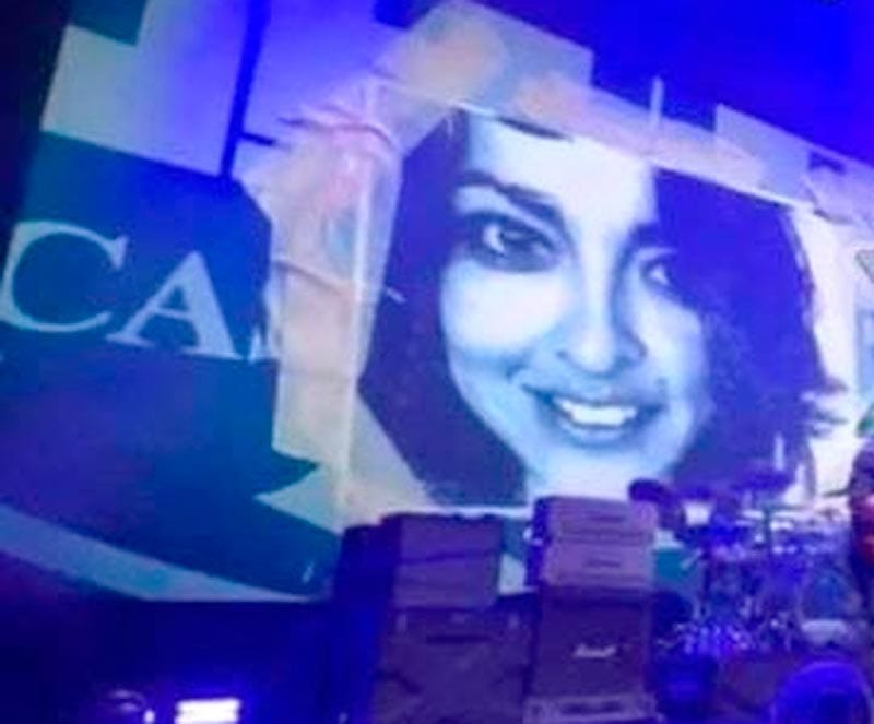 Todas las imágenes de periodistas fallecidos, iban siendo pasados en enorme pantalla, de manera respetuosa como una protesta del grupo, al gobierno, todo esto, durante la interpretación de "Antes de que Nos Olviden".