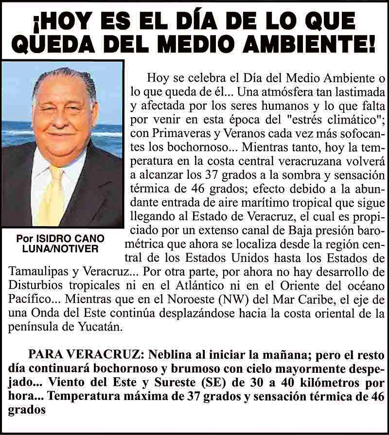PRIMERA ¡HOY ES EL DÍA DE LO QUE QUEDA DEL MEDIO AMBIENTE! - *TEMPERATURA MÁXIMA DE 37 GRADOS 5 junio 2024 Más Noticias ¡YA HAY TERNA! - RAÚL PEIMBERT EN LA LISTA ¡“CEMENTERIO”! - DE ULÚAS ¡INAUGURA PATY OTRA CALLE! ¡NO LE CREYERON! - Y LO BUSCAN NOTI-MEME | - ECOS DEL INFORME! ¡VERÓNICA VA CON NAHLE! - Y AL CONGRESO ¡“FAST TRACK”! - *Mientras el Mariner salía y entraba de Pajaritos en Coatzacoalcos ¡OPERATIVO LUPE-REYES! ¡MANDAN LA BILLETIZA! - *Corea manda 150 mil dólares ¡CRISTINA GANA LA ELECCIÓN!