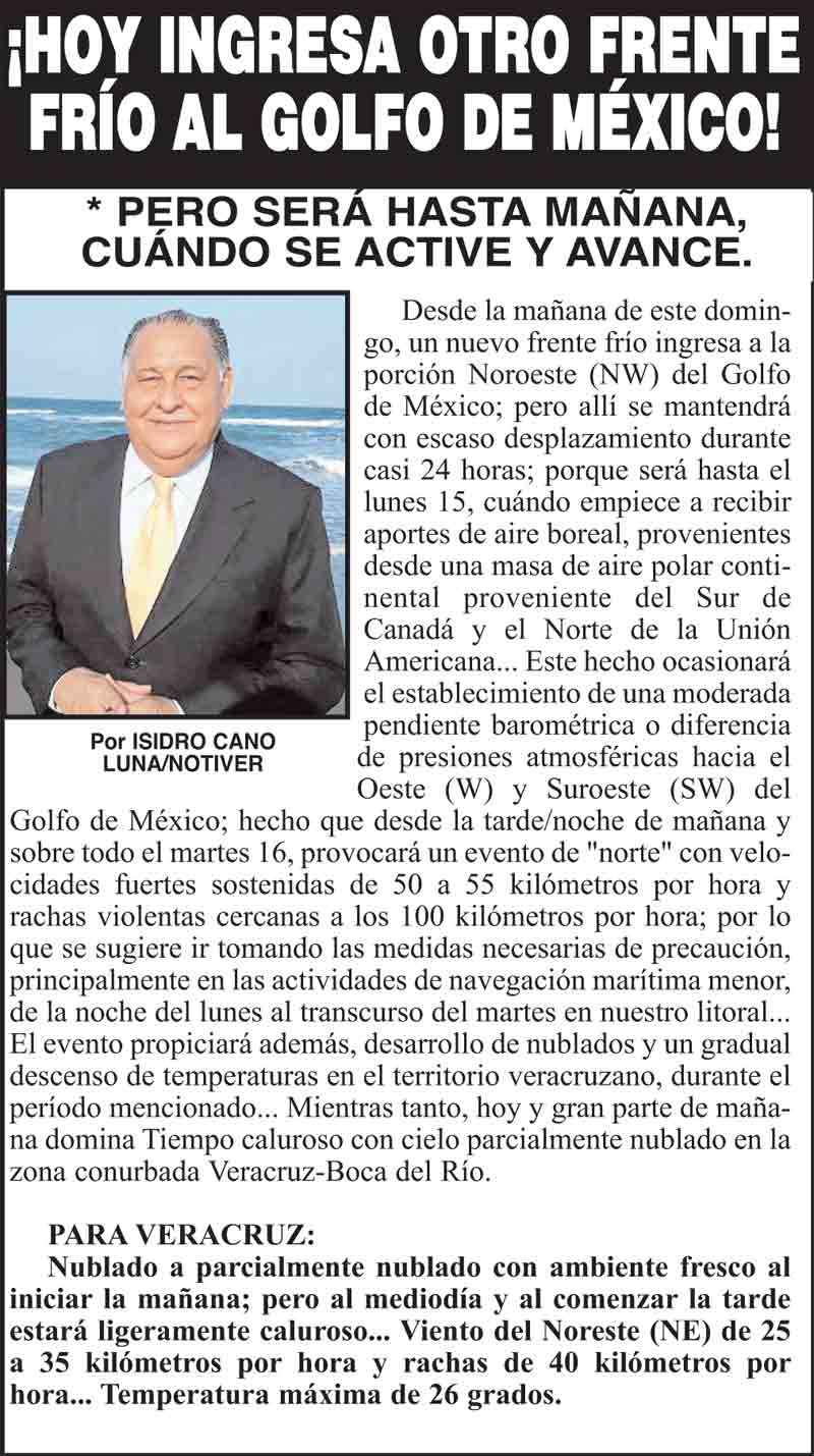 PRIMERA ¡HOY INGRESA OTRO FRENTE FRÍO AL GOLFO DE MÉXICO! * PERO SERÁ HASTA MAÑANA, CUÁNDO SE ACTIVE Y AVANCE. 14 enero 2024 Más Noticias ¡TRIPLE FEMINICIDIO! - TERROR EN TLAPACOYAN ¡A SACAR SUÉTERES! - *Alertan por el Frente Frío 18 ¡HABEMUS CORTE! - CARNAVAL 2026 ¡CLAUSURAN GRANJAS AVÍCOLAS! - *En Lerdo por falta de permisos 2025 ¡ATAQUE ARMADO A TRÁILER! - *No era de los Junior's Klan LOS CARTONES ¡CONMEMORARÁN EL ANIVERSARIO 112 DEL NATALICIO DEL “PIRATA” FUENTE! ¡PEGARÁ NORTAZO! - *Traerá rachas de 85 a 110 kph ¡SERÁ SALMA EMBAJADORA! - DEL MUNDIAL FIFA NOTI-MEME | - YA TIENES TU STARFUCKS?