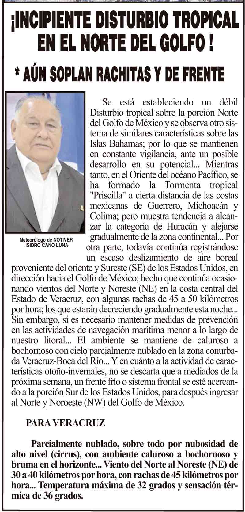 PRIMERA ¡INCIPIENTE DISTURBIO TROPICAL EN EL NORTE DEL GOLFO ! - *AÚN SOPLAN RACHITAS Y DE FRENTE 5 octubre 2025 Más Noticias LA ENCUESTA | - ME ESTÁS OYENDO INÚTIL?... ¡CON BAILONGOS QUIEREN AYUDAR A LOS DAMNIFICADOS DEL NORTE! - *El mismo Alor, toca los timbales ¡YA SE LA APROBARON! - REFORMA PARA LA FISCALÍA ESTATAL NOTI-MEME | - ASÍ ESTUVO EL INFORME... ¡MÁS DE 9 MIL MILLONES! - *Eso costaría cancelar en Veracruz al Grupo MAS ¡LE DAN LUZ VERDE! - DESDE GUATEMALA ¡EL CUARTO! ¡Y COM-PA-RE-CIÓ! - ÁNDALE... ¡NO SE VA LISBETH AURELIA! - *Descarta ir a la Fiscalía y que seguirá como magistrada ¡CREAN EL SÚPER MAÍZ!