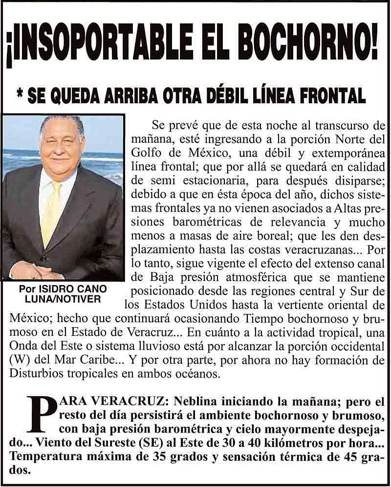 PRIMERA ¡INSOPORTABLE EL BOCHORNO! - *SE QUEDA ARRIBA OTRA DÉBIL LÍNEA FRONTAL 28 mayo 2024 Más Noticias ¡YA HAY TERNA! - RAÚL PEIMBERT EN LA LISTA ¡“CEMENTERIO”! - DE ULÚAS ¡INAUGURA PATY OTRA CALLE! ¡NO LE CREYERON! - Y LO BUSCAN NOTI-MEME | - ECOS DEL INFORME! ¡VERÓNICA VA CON NAHLE! - Y AL CONGRESO ¡“FAST TRACK”! - *Mientras el Mariner salía y entraba de Pajaritos en Coatzacoalcos ¡OPERATIVO LUPE-REYES! ¡MANDAN LA BILLETIZA! - *Corea manda 150 mil dólares ¡CRISTINA GANA LA ELECCIÓN!