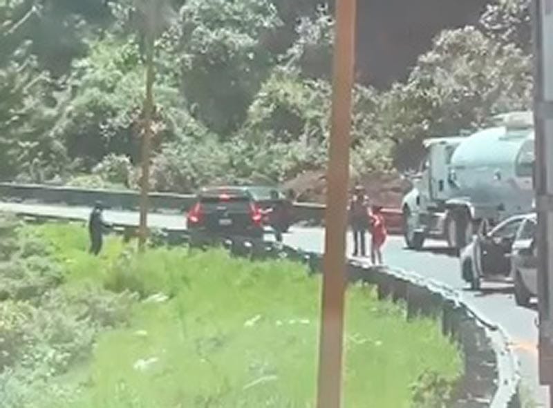 En el video que se difundió se ve la camioneta de Araceli parada en una esquina de la carretera mientras el coche de los delincuentes bloquea el paso y a su derecha hay un tráiler, dice ella que el chofer del tráiler le indicaba con las manos, "calma, calma".