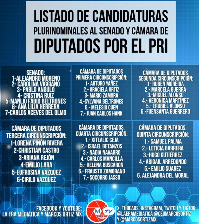 En la Tercera circunscripción aparece Lorena Piñón Rivera y Cirilo Vázquez Parissi; la primera en la posición número 1 y Cirilo en la posición número 6.