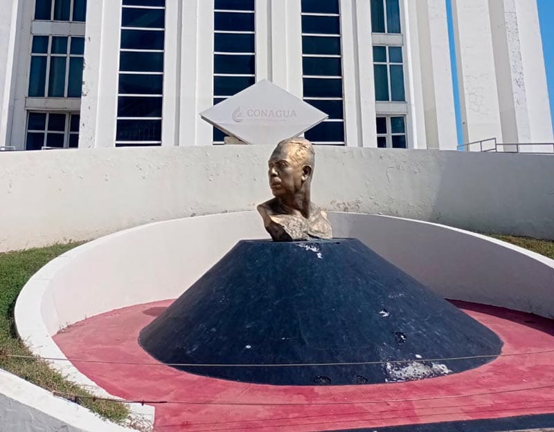 El viernes 13 Claudia fue abordada sobre el tema, este edificio era de Pemex, se supone que pasó a la Marina y luego a la Conagua, incluso se alcanza a ver un letrero gastado de esa dependencia: